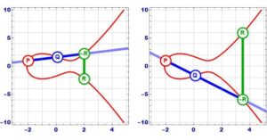 楕円曲線は、代数幾何学において重要な曲線であり、以下のような三次方程式で定義されます。