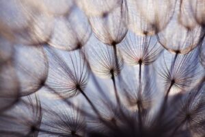 研究によると、タンポポの冠毛の空隙率は約80〜90%です。つまり、冠毛の面積の約80〜90%が隙間で、実際に繊維が存在するのは10〜20%だけなのです。