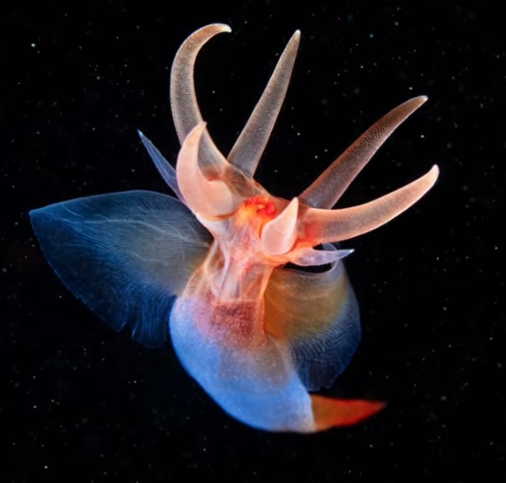 英語では Sea Angel(海の天使)、日本語では 流氷の天使 と呼ばれるクリオネ。このニックネームの理由は、その姿を一目見ればすぐにわかります。